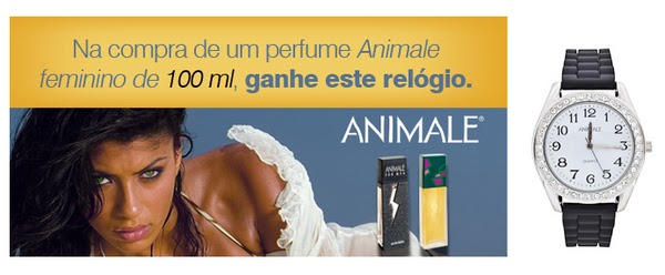 Por exemplo, na compra de um perfume Animale For Men de 100 ml (R$ 164,90) você GANHA AUTOMATICAMENTE esse relógio da marca: