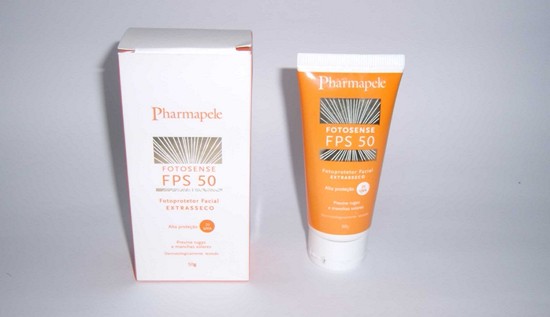 A Pharmapele me enviou um kit bem bacana há certo tempo atrás. Um dos produtos que chamou minha atenção foi o protetor solar Fotosense FPS 50, com proteção UVA 20 (excelente).
