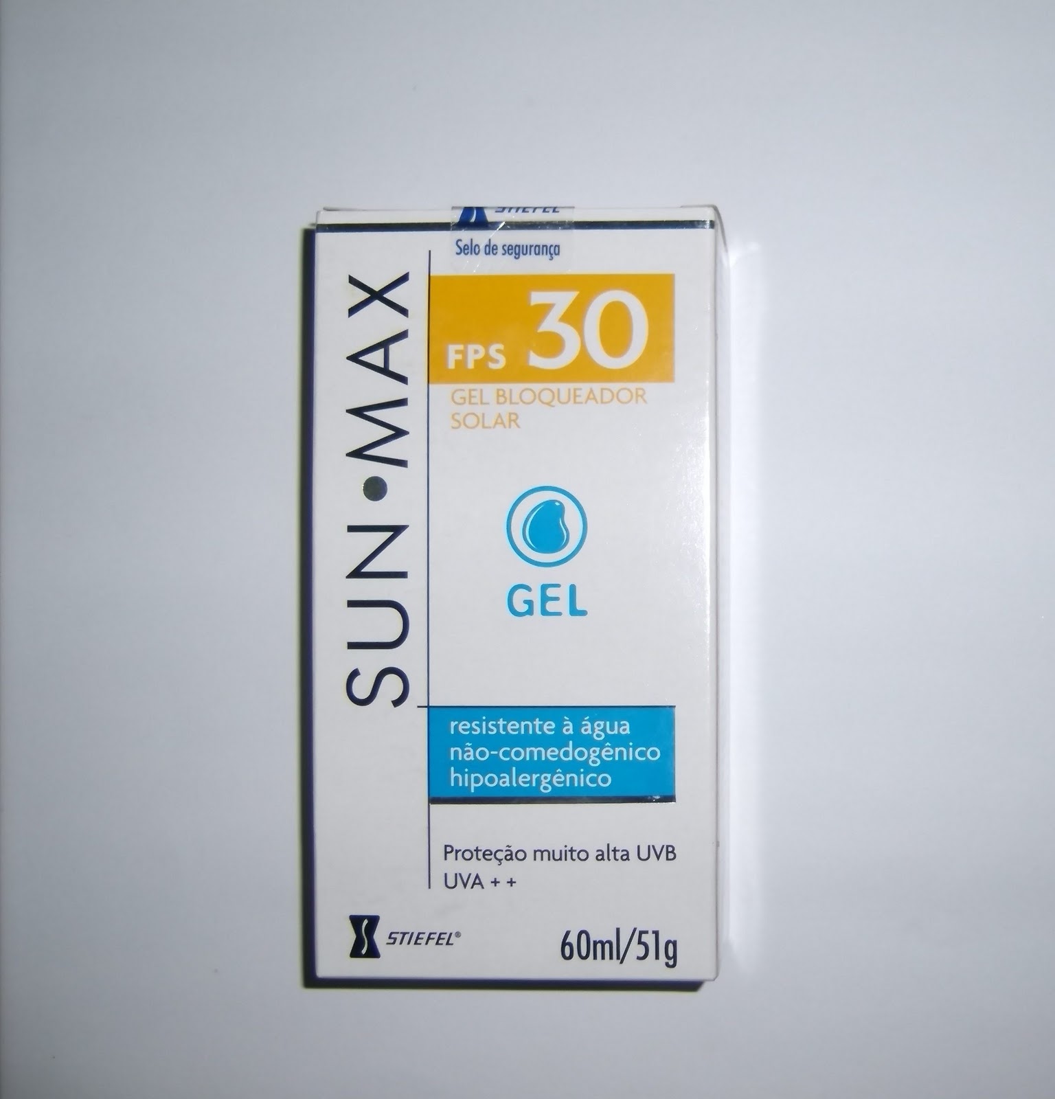 Começando pelo protetor solar Sun Max em gel com FPS 30: