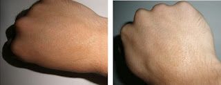 Passei uma camada fina na mão para mostrar a secagem. Dá para perceber que a 1ª imagem possui mais brilho, pois eu tinha acabado de aplicar.